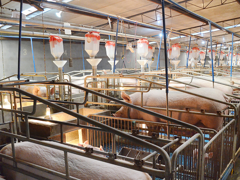 二場總建筑面積2.5萬平方米,養(yǎng)豬圈舍49棟共2萬平方米(其中:公豬舍3棟、妊娠舍7棟、分娩舍8棟、保育舍10棟、育肥舍20棟、后備種豬舍1棟,具備總存欄17000頭的能力,其中種公豬100頭、種母豬1500頭、仔豬5500頭、育成豬10000頭),配套辦公和倉庫等輔助設(shè)施用房5000平方米。養(yǎng)豬房舍采用封閉式、全漏糞的設(shè)計(jì)理念,配套安裝自動(dòng)化溫控設(shè)備49套、自動(dòng)供料設(shè)備46套,為豬只生長創(chuàng)造了更加優(yōu)良的生活環(huán)境,溫控和自動(dòng)供料設(shè)備總投資500余萬元。 二場于2012年直接從加拿大加裕種豬公司引進(jìn)長白、大約克和杜洛克SPF(無特定疫?。┰N豬300頭,單價(jià)15000元,通過空運(yùn)回國。二場能繁母豬存欄規(guī)模為1500頭,作為國家生豬產(chǎn)業(yè)技術(shù)體系樂山綜合試驗(yàn)站依托單位和國家生豬核心育種場,依托四川農(nóng)業(yè)大學(xué)李學(xué)偉教授科研團(tuán)隊(duì)嚴(yán)格按照國家生豬聯(lián)合育種工作要求堅(jiān)持不懈開展種豬育種,同時(shí),在加拿大加裕種豬公司育種專家的指導(dǎo)下進(jìn)行同步育種。專業(yè)從事外種豬純繁育種和二元雜母豬制種,年繁育優(yōu)質(zhì)長白、大約克、杜洛克純種豬和二元雜母豬1萬頭,配套生產(chǎn)優(yōu)質(zhì)商品肉豬3萬頭。從當(dāng)前中國養(yǎng)豬業(yè)格局看,生豬價(jià)格將長期維持在16元/公斤的水平,按照種豬均價(jià)3500元/頭,商品生豬1700元/頭的價(jià)格標(biāo)準(zhǔn)和種豬2000元/頭、商品肉豬500元/頭的利潤標(biāo)準(zhǔn),公司年可銷售種豬5000頭、商品肉豬25000頭,實(shí)現(xiàn)年銷售收入6000萬元,利潤2250萬元。 以“好品種帶產(chǎn)業(yè)發(fā)展,好產(chǎn)業(yè)促地方經(jīng)濟(jì)”的經(jīng)營理念,堅(jiān)持以科技為先導(dǎo),以產(chǎn)品質(zhì)量為生命,以繁育優(yōu)質(zhì)種豬為己任,致力于推動(dòng)地方生豬產(chǎn)業(yè)發(fā)展。 |